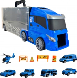 WOOPIE vrachtwagen 3v1 Politie is de perfecte keuze voor elk kind dat van politievoertuigen, transport en actie houdt! Deze set bevat: