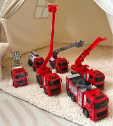 - 6 voertuigen in de verpakking: ladderwagen, tankwagen, kraanwagen, blusvoertuig, voertuig met uitschuifbare korf en beweegbaar platform, vrachtwagen met hef-/neerlaatbaar platform.