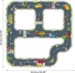 Na het leggen krijg je een ruim oppervlak van 82,5 × 82,5 cm, ideaal om te spelen met autootjes en bouwwerken van blokken. Dankzij de hoogwaardige afwerking en FSC-certificering is het product milieuvriendelijk en veilig voor kinderen. De stevige doos met een comfortabele draaggreep maakt meenemen en opbergen gemakkelijk.