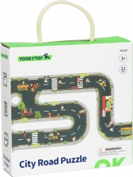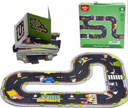 Bouw je eigen stad en racecircuit met de puzzelset van TOOKY TOY. De set bevat 21 delen (weggedeelte-puzzels en een boekje met routevoorbeelden) waarmee je verschillende wegvarianten kunt maken met kruispunten, rotondes en verkeerselementen. Na het leggen ontstaat een groot speeloppervlak tot 82,5 × 82,5 cm, dat de fijne motoriek, creativiteit en verbeeldingskracht van kinderen vanaf 3 jaar stimuleert.