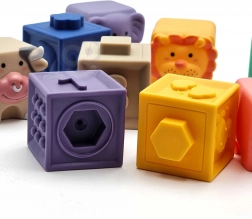 Elke blok biedt verschillende texturen, kleuren en geluiden voor de ontwikkeling van visueel-auditieve coördinatie en fijne motoriek van het kind.