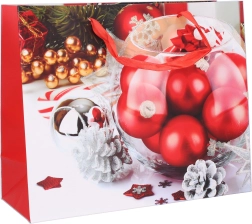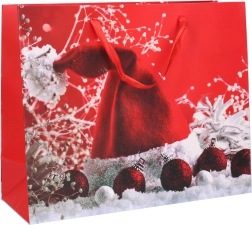 Stijlvolle papieren cadeautas in maat M met kerstmotief, ideaal voor het elegant verpakken van kerstcadeaus. De praktische afmetingen 26 × 32 × 10 cm zijn geschikt voor boeken, cosmetica en kleinere geschenken. Kies een wintermotief en geniet van snel en eenvoudig inpakken zonder knippen en plakken. De tas is gemaakt van kwalitatief stevig papier en past bij elke kerstgelegenheid.
