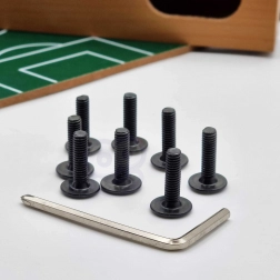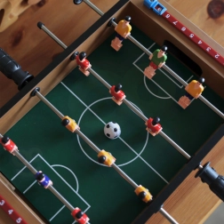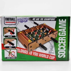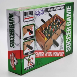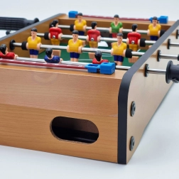 Geniet van spannende miniwedstrijden met de compacte WOOPIE tafelvoetbal. De stabiele houten constructie, metalen stangen en ergonomische handgrepen zorgen voor soepele controle over de poppetjes en comfortabel spel. Geïntegreerde scoretellers aan beide zijden helpen je de voortgang van het spel bij te houden.