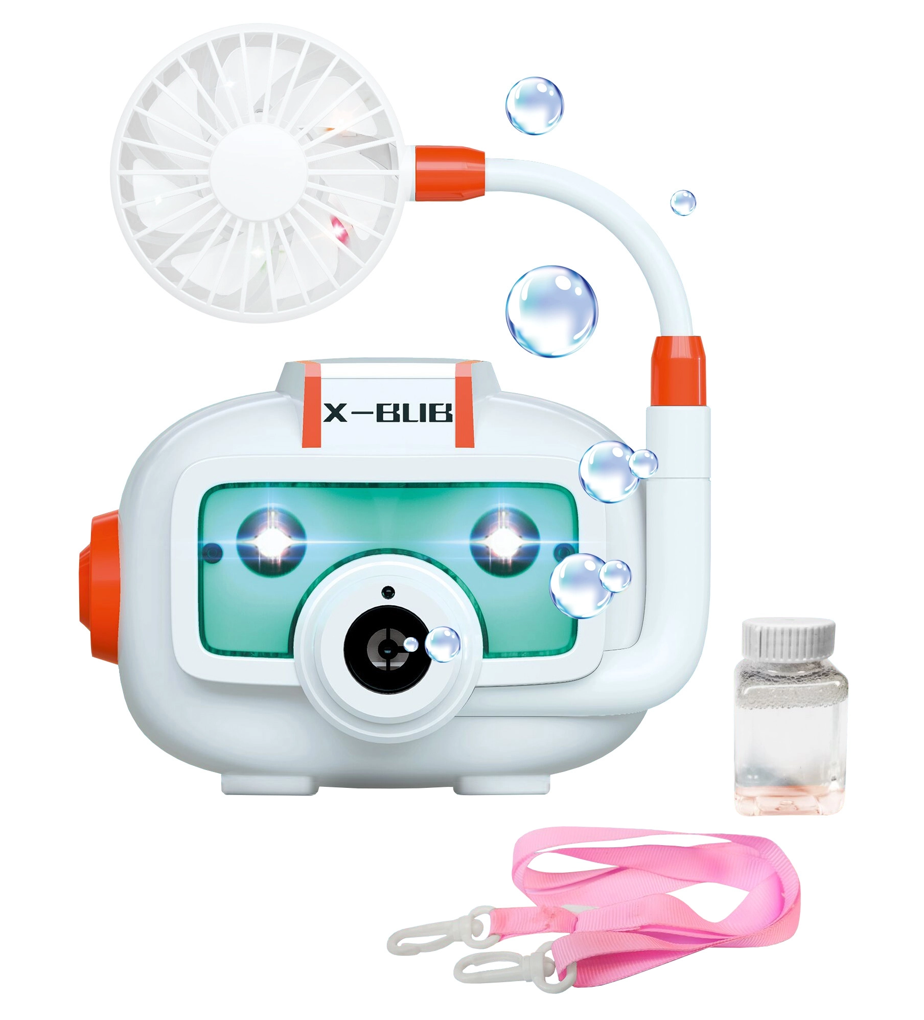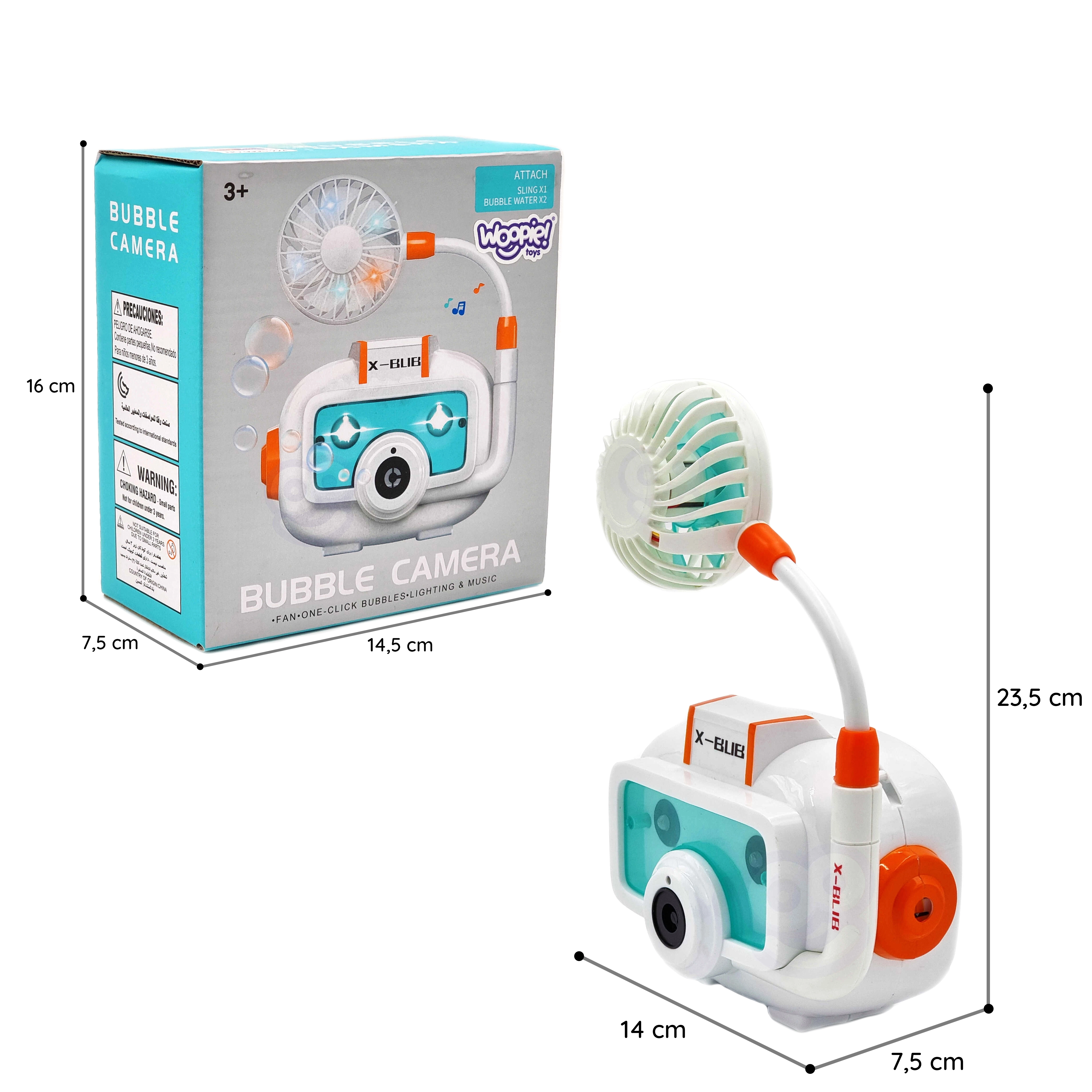 De gekleurde bellenmachine in de vorm van een fotocamera van het merk Woopie is een geweldige speelgoed voor kinderen. Deze camera biedt niet alleen het blazen van bellen, maar ook lichteffecten die op een flits lijken, een ventilator die de bellen verder weg blaast, en een aangename melodie voor nog leukere momenten. Kinderen kunnen doen alsof ze foto’s nemen en daarna achter de bellen aan springen. Er is ook een flesje bellenblaas en een koord inbegrepen, zodat je de camera om de nek kunt hangen.