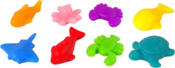 De set bestaat uit in totaal 111 onderdelen, waaronder 16 opdrachtkaarten waarmee kinderen leren leggen en tellen. De veelkleurige zeedierenfiguren (bijv. rode dolfijnen, gele visjes, paarse krabben) bieden ruimte voor fantasie en vergroten de interactie met het kind. Dit alles in een veilige omgeving dankzij de rubberen figuren.