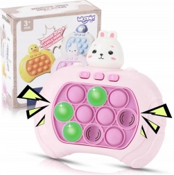 Interactief spel Pop It Konijn is een antistress speelgoed geschikt voor zelfs de kleinste kinderen. Het spel produceert vrolijke geluiden die kinderen vermaken en het spel leuker maken. Het is klein en kan gemakkelijk worden meegenomen. Pop It brengt plezier aan zowel kinderen als volwassenen die het graag kiezen. Het ontwikkelt de geest, handmatige vaardigheden, oog-handcoördinatie en helpt bij het bestrijden van stress.