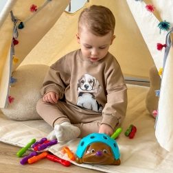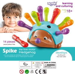 Deze educatieve speelgoedset is ideaal voor de eerste stapjes in leren door spel. Grote ergonomische onderdelen passen in kleine handjes, en de opvallende kleuren nodigen uit tot sorteren en het maken van eenvoudige reeksen. De genummerde schelp stimuleert vroeg tellen en het onderscheiden van kleuren, terwijl het plaatsen van de stekels de fijne motoriek en het geduld traint.