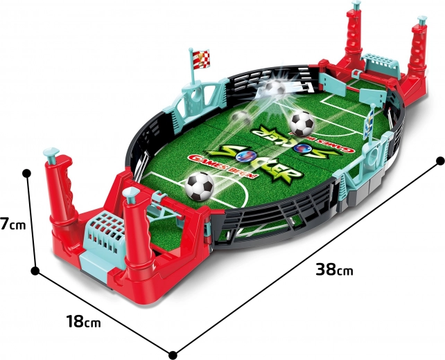 Het spel bevat een compact speelveld met doelen die veilig en geschikt zijn voor kleine kinderen. Het kleurrijke ontwerp trekt de aandacht en nodigt uit tot spelen.