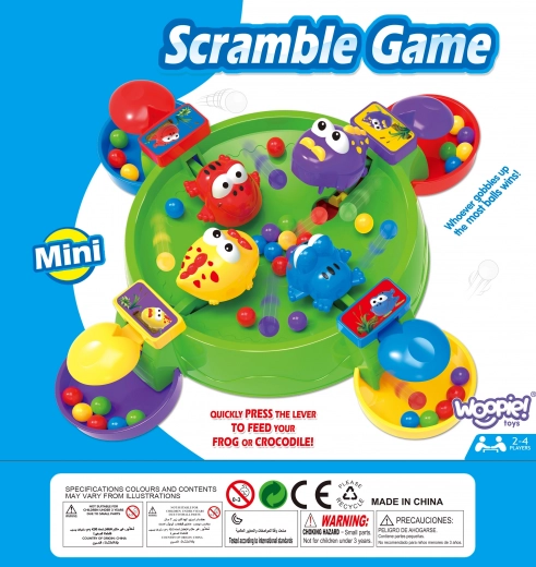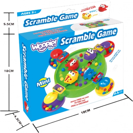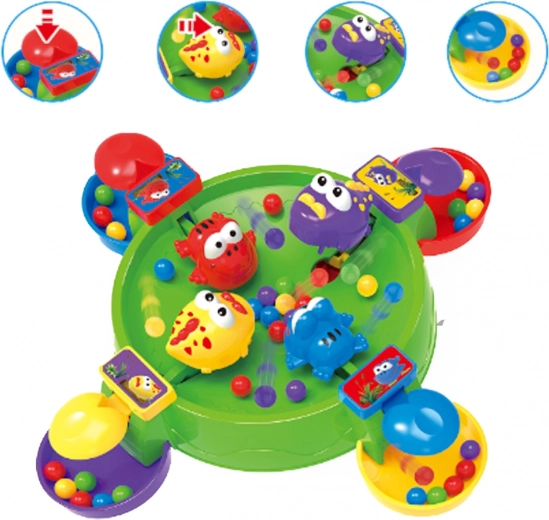 Hongerige kikkers en krokodillen van het merk WOOPIE brengen een dynamisch en vrolijk spel dat kinderen meteen in de actie trekt. Met een druk op de knop “hapt” het figuurtje balletjes, en wie er de meeste verzamelt wint. Dankzij het compacte formaat is het ideaal voor thuis, bij de grootouders en voor op reis.