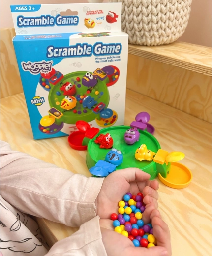 Het leuke Woopie-tafelspel voor kinderen vanaf 3 jaar ontwikkelt fijne motoriek, snelle reacties en oog-handcoördinatie. Het doel is om je figuurtje te voeren met zoveel mogelijk gekleurde balletjes via een knop die het hapmechanisme activeert. Het spel is snel, kleurrijk en interactief, geschikt voor 1–4 spelers en ideaal voor familiepret en onderweg.