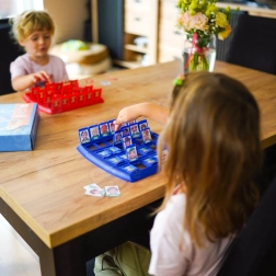 Zet twee spelers tegenover elkaar en ontdek met slimme “ja/nee”-vragen welk personage de tegenstander heeft gekozen. Elk antwoord helpt je gezichten op het bord uit te sluiten – sluit de betreffende venstertjes en kom als eerste tot de oplossing. Het spel is snel, intuïtief en ideaal voor kinderen vanaf 5 jaar.