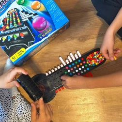 Spelregels: Eén speler maakt een geheime code van gekleurde elementen, die de andere spelers binnen een beperkt aantal pogingen proberen te raden. Na elke poging zien ze welke elementen correct zijn en op de juiste plek staan, wat leidt tot de stapsgewijze onthulling van de volledige code.