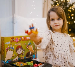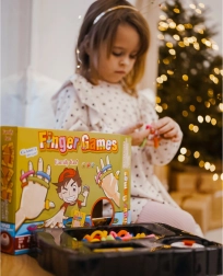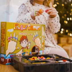 WOOPIE FINGER GAMES is een vlot en verslavend spel waarin kinderen en volwassenen vingerbehendigheid, reactiesnelheid en planning trainen. Trek een kaart met een patroon en doe de gekleurde elastiekjes zo snel mogelijk om je vingers precies volgens de opdracht.