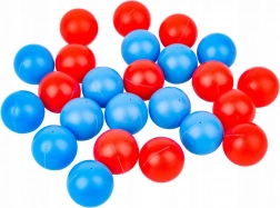 De set met 24 plastic ballen (12 rode en 12 blauwe) is licht, duurzaam en ideaal voor herhaald spelen thuis en op feestjes.