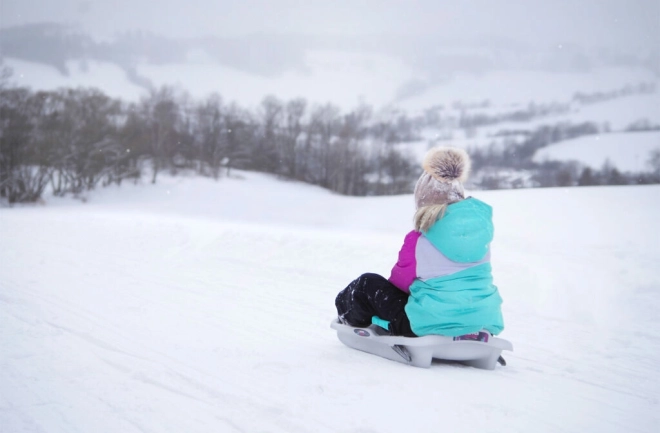 Veiligheid staat voorop: geïntegreerde remmen zorgen voor betrouwbaar afremmen en de frontale kreukelzone helpt schokken te absorberen. Dankzij het lage gewicht is de bob gemakkelijk te dragen en met het trekkoord trek je hem moeiteloos terug de heuvel op.