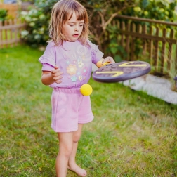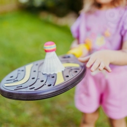 Alles berg je op in de stevige ritshoes, die de uitrusting beschermt en meenemen overal naartoe mogelijk maakt – naar de tuin, speeltuin of het strand. De set helpt oog-handcoördinatie en reactievermogen te verbeteren en motiveert op een natuurlijke manier tot beweging in de frisse buitenlucht.