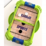 Op beide helften van het bord zitten elastieken om de puck weg te schieten. In het midden bevindt zich een wand met een kleine opening om het spel te starten. Aan de zijkanten zijn twee plankjes waar je de gewonnen pucks kunt plaatsen. Elke speler krijgt 3 pionnen - span het elastiek met een pion en schiet naar het veld van de tegenstander! Het doel van het spel - net als bij hockey - is om meer doelpunten te maken dan je tegenstander.