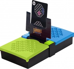 - Spelers plaatsen het speelbord tussen elkaar en leggen de eerste patroonkaart op de houder