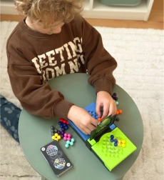 - Uit hun kleurenpool proberen ze zo snel mogelijk het patroon op de kaart voor hen te vormen