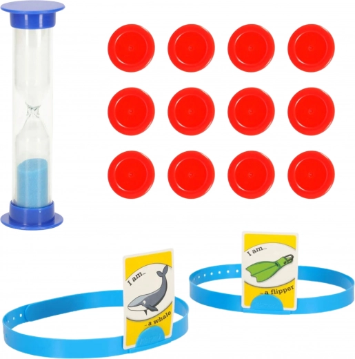 Duurzame hoofdbanden houden de kaart comfortabel op het hoofd, de zandloper geeft tempo aan de rondes en de fiches helpen bij de score. De ideale set voor een vlot en spannend spel voor twee.