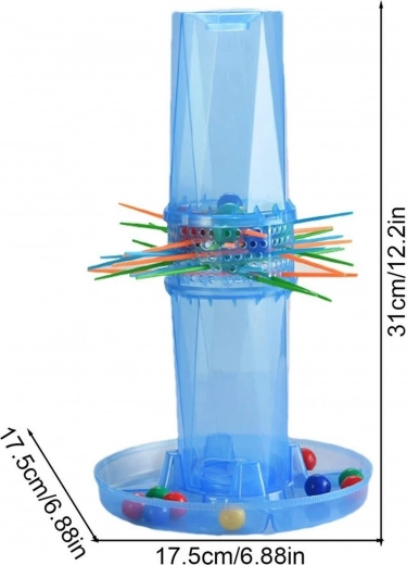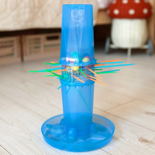 Een populair bordspel met een transparante toren, kleurrijke stokjes en knikkers. Elke zet telt – trek het juiste stokje en houd de knikkers bovenin. Het spel is ideaal voor kinderen vanaf 3 jaar en volwassenen, heeft snelle en eenvoudige regels en dankzij de duurzame kunststof uitvoering is het bestand tegen vaak spelen.