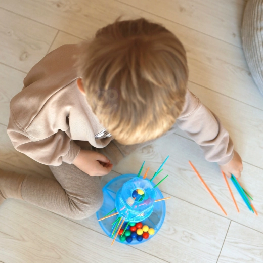 Het uittrekken van dunne stokjes zonder dat de knikkers vallen, versterkt de vingervaardigheid, het geduld en de precisie van bewegingen – ideaal voor de ontwikkeling van kinderen en leuk voor volwassenen.