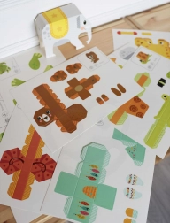 De onderdelen druk je eenvoudig met de hand uit, vouw je volgens de stippellijnen en lijm je op de gemarkeerde plekken aan elkaar. Veilig en overzichtelijk, ook voor jonge kinderen.