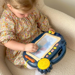 Het magnetische tekenbord van WOOPIE biedt eindeloze porties creatief plezier zonder rommel. Het stimuleert schrijven, tekenen en de ontwikkeling van de fijne motoriek. Met de schuifgum wis je een tekening eenvoudig en begin je zo weer opnieuw. Inclusief stylus, 4 stempels en multifunctionele geluidstoetsen met effecten, liedjes, elektronische geluiden, de Engelse alfabetuitspraak en een drum. Dankzij het praktische handvat en de uitklapbare pootjes is het bord ideaal voor onderweg en op tafel.