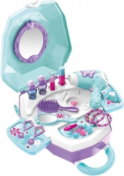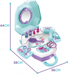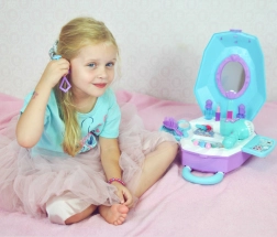 De kinderkoffer op wieltjes verandert in een mum van tijd in een complete kaptafel met spiegel en uitschuifbaar werkblad. De praktische 2-in-1 uitvoering zorgt voor speelplezier thuis en onderweg en maakt het opbergen van alle accessoires eenvoudig.