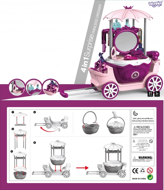 Woopie draagbare kinder-kaptafel 4-in-1 op wieltjes, 31 accessoires