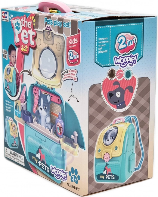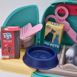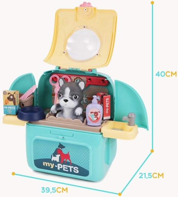Wij presenteren de draagbare kindersalon van Woopie, die je kind uren speelplezier en betrokkenheid met zijn huisdier biedt. Compact design: Maakt het gemakkelijk om overal mee naartoe te nemen, zowel naar de speeltuin als naar de kleuterschool. De rugzak heeft een praktisch handvat en een speciale sluiting voor maximale veiligheid voor het hondjesspeelgoed.