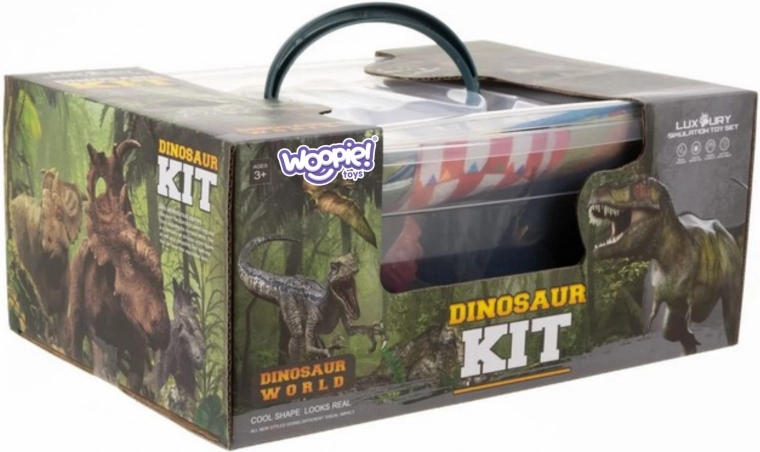 Deze complete set van het merk WOOPIE neemt kinderen vanaf 3 jaar mee naar het fascinerende dinotijdperk. Realistisch vormgegeven figuren stimuleren de verbeelding, fijne motoriek en het leren – kinderen ontdekken de namen van de soorten, hun uiterlijk en levenswijze. De vilten mat met parkthema creëert een boeiende speelomgeving.