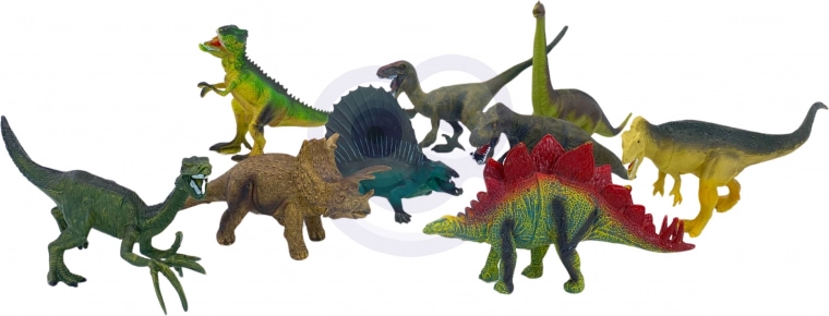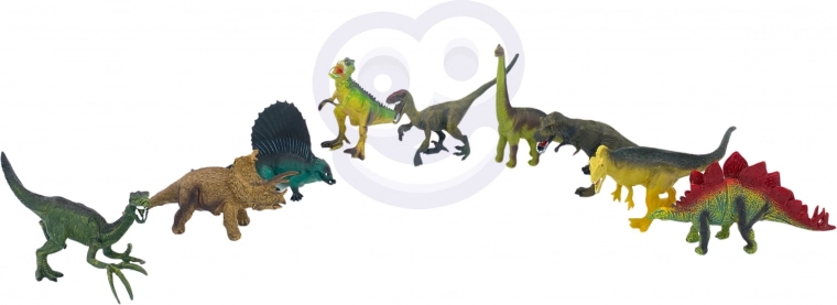 - 16 onderdelen in de set: 9 dinosaurussen en 5 bomen, vilten speelmat, draagkoffertje.