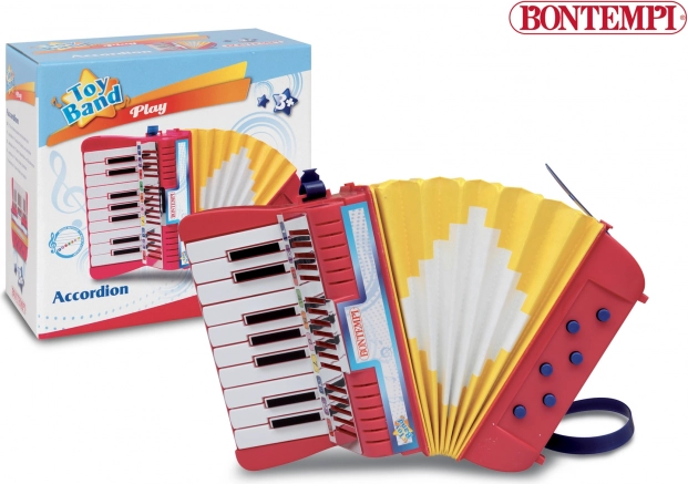 De BONTEMPI kinderaccordeon is het ideale eerste muziekinstrument voor jonge muzikanten. Dankzij het compacte ontwerp, de stevige afwerking en de intuïtieve bediening leren kinderen gemakkelijk de basis van spelen en ritme. Riemen van duurzaam plastic zorgen voor een stabiele grip en zekerheid tijdens het spelen.
