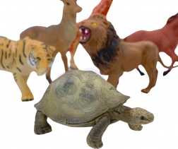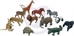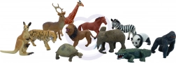 - 12 st. (kangoeroe, tijger, giraffe, leeuw, schildpad, olifant, krokodil, gorilla, panda, zebra, paard, hert)