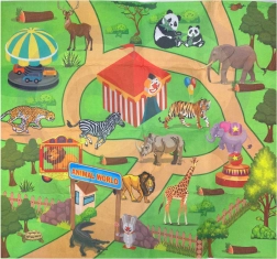 De kleurrijke mat creëert een natuurlijke omgeving voor safari-scènes en helpt het spel te structureren.