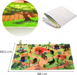 Dit educatieve speelgoed stelt kinderen in staat om verschillende soorten dieren en hun namen te herkennen, wat leren door middel van spel bevordert. Een praktische koffer met comfortabele handgreep maakt eenvoudig opruimen en transport mogelijk. De meegeleverde mat met parkmotief stimuleert de kinderlijke verbeelding en biedt veel verschillende speelscenario's.