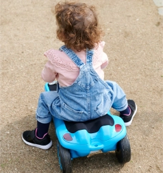 Voor kleine racers is er de BIG Bobby Car, die eindeloze speelmogelijkheden en ontwikkeling van motorische vaardigheden biedt. Belangrijke kenmerken: