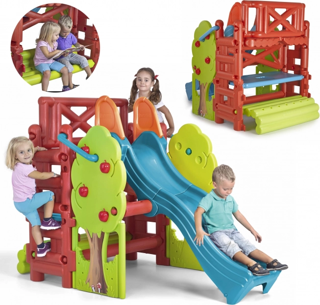 Geniet van veilig en vrolijk buitenspelen met de multifunctionele set FEber Wood House. Combineert glijden, klimmen en zitten aan de tafel, zodat kinderen aan hun trekken komen bij sport en creativiteit. De hoogwaardige afwerking en stabiele constructie zijn ideaal voor dagelijks spelen in de tuin.