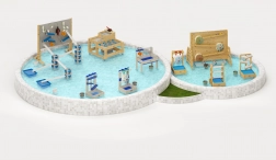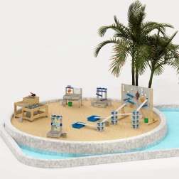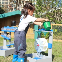 De robuuste constructie van duurzame materialen met een niet-giftige afwerking is geschikt voor buitengebruik. Kinderen leren spelenderwijs het principe van oorzaak–gevolg: ik giet water – het wiel gaat draaien. Het waterstation is ideaal om bij de zandbak, in de tuin en in kleuterscholen te gebruiken.
