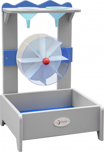 Ontdek de magie van speelse natuurkunde met het waterrad voor kinderen CLASSIC WORLD EDU. De twee trechters bovenaan laten je de stroomrichting veranderen en daarmee ook de draairichting van het waterrad – met of tegen de klok in. Het spel bevordert op natuurlijke wijze het sensorisch waarnemen, logisch denken en stimuleert zelfstandig experimenteren.