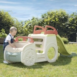 De avonturenauto is de perfecte plek voor buitenspel voor de allerkleinsten! Deze bijzondere speelzone, geïnspireerd op een off-road voertuig, neemt kinderen mee naar een wereld vol spannende ritten en avonturen.