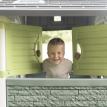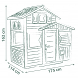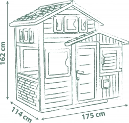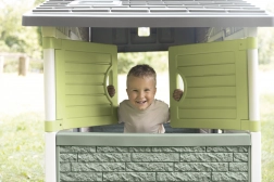 Kinderen kunnen spelen in het ruime huisje met een hoogte van meer dan 1,5 meter, dat te openen ramen, een deur met kijkvenster en een brievenbus bevat. De sobere kleuren in natuurlijke tinten passen in elke tuin.