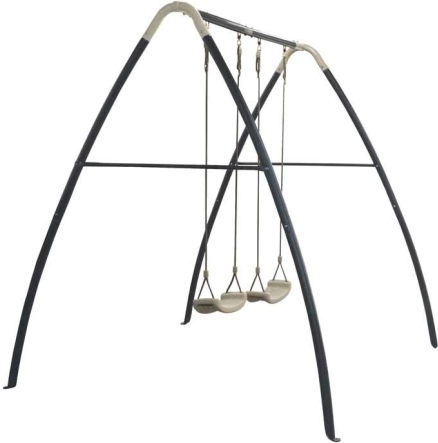 Dankzij het stevige metalen frame met twee zitjes is de schommel stabiel en veilig voor buitengebruik.