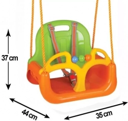 De 3-in-1 schommel is een uitstekende keuze voor ouders die een veilige en langdurige oplossing zoeken voor plezier in de tuin én binnenshuis. Dankzij het modulaire systeem kunnen rugleuning en voorbeugel eenvoudig worden verwijderd, zodat je het zitje aanpast aan de leeftijd en vaardigheden van je kind. Geïntegreerde riemen houden de kleine passagier stevig en comfortabel op zijn plek, terwijl stevige kunststoffen zonder scherpe randen veiligheid en eenvoudig reinigen garanderen.