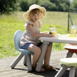 Comfortabel en robuust kinderstoeltje met een design dat geschikt is voor zowel binnen- als buitengebruik. Anti-UV-behandeling zorgt voor uitstekende bestendigheid en kleurvastheid. Verkrijgbaar in een mooie blauwe kleur. Maximale draagkracht is 50 kg. Dit product is milieuvriendelijk, want het bevat minimaal 90% gerecycled materiaal.