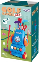 Kinder golfset Woopie biedt een geweldige manier om tijd door te brengen, niet alleen in de tuin maar ook thuis. Het product is geschikt voor kinderen ouder dan 3 jaar en bevat 4 golfclubs, 4 ballen in verschillende kleuren en twee holes met vlaggetjes. Voorzien van praktische wieltjes voor eenvoudig transport.