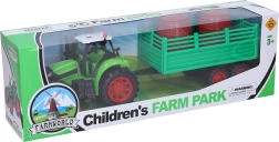 Deze realistische tractor met afneembare aanhanger is een uitstekende keuze voor jonge liefhebbers van landbouwmachines. De frictie-aandrijving zorgt voor een soepele beweging zonder batterijen en stimuleert zowel de fijne motoriek als de verbeelding.