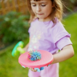 De 3-in-1 sportieve racket Woopie tovert elke plek om tot een speelveld. Kinderen kunnen de bal vangen, terugslaan en coole trucs uitproberen. De lichte constructie en comfortabele grip maken snelle en leuke spelletjes eenvoudig voor zowel beginners als gevorderden.