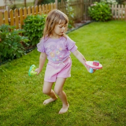 De set is gemaakt van hoogwaardige en duurzame kunststoffen, dus perfect voor dagelijks spelen buiten en binnen. Hij ondersteunt de natuurlijke ontwikkeling van vaardigheid, creativiteit en coördinatie – ideaal voor actieve momenten met het gezin.